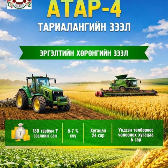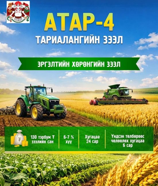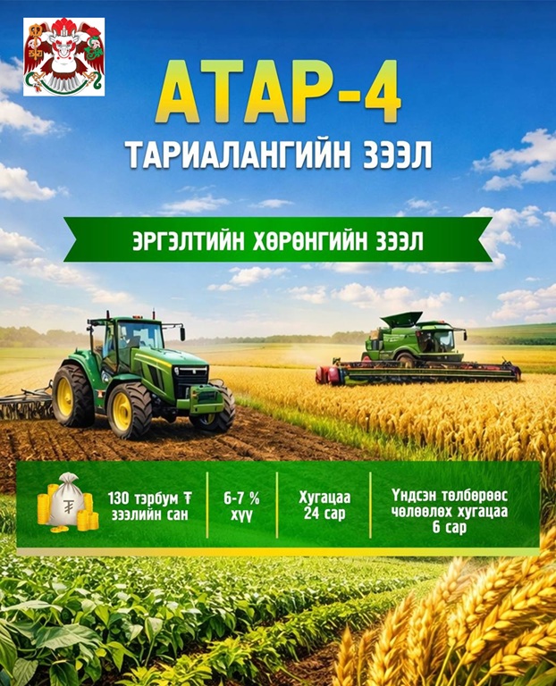 - 🌾🌾🌾 АТАР-4 ТАРИАЛАНГИЙН ТОГТВОРТОЙ ХӨГЖЛИЙН АЯНЫ ХҮРЭЭНД ОЛГОХ ТАРИАЛАНГИЙН ҮЙЛДВЭРЛЭЛ ЭРХЛЭГЧДИЙГ ДЭМЖИХ ЭРГЭЛТИЙН ХӨРӨНГИЙН ЗЭЭЛ